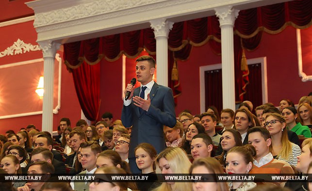 "Встречи с молодежью для меня очень ценны. Они дают возможность увидеть будущее нашего государства. Вам его создавать, совершенствовать и оберегать. Вашими устремлениями, мечтами и, уверен, добрыми делами Беларусь будет жить завтра, - заявил Президент. - Где бы вы ни проявили себя - в литературе, академическом искусстве, кино, на телевидении, эстраде, в танце - вы будете дарить людям настроение, эмоционально обогащать их и, главное, формировать духовный каркас нации".