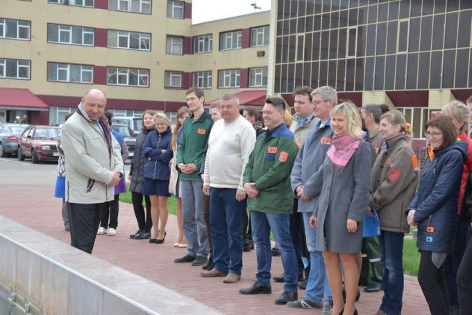 Гомельский химический завод присоединился к городскому празднику по случаю включения фонтанов. Фонтан у заводоуправления включили ровно в полдень, одновременно с главными городскими источниками водяных струй.
