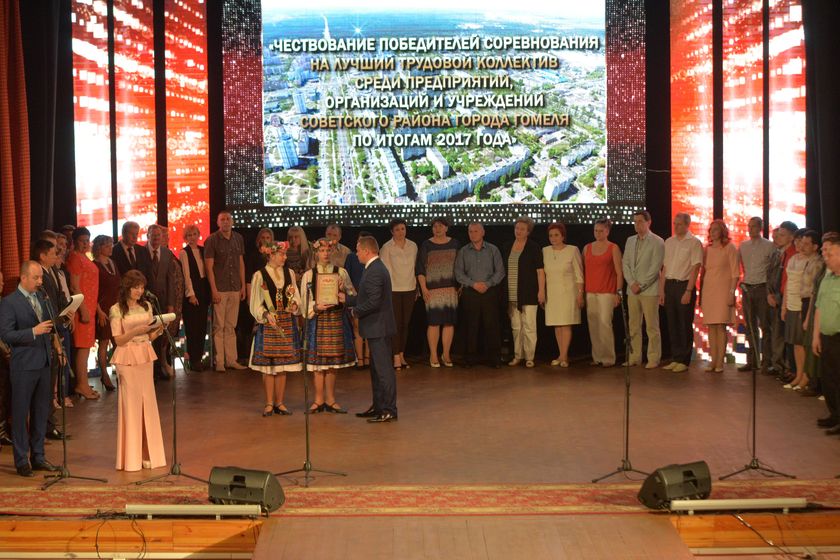 В Советском районе определены лучшие трудовые коллективы по итогам работы в 2017 году. Победителем стал ЗАО «Гомельский вагоностроительный завод» (директор Игорь Краснов). На втором месте – ОАО «Медпласт» (директор Владимир Резников). Замыкает тройку лидеров ОАО «Гомельжелезобетон» (директор Александр Старостов).