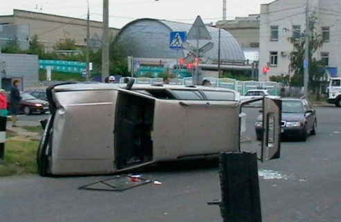 Фотофакт: на перекрестке Чехова и Хатаевича перевернулся автомобиль
