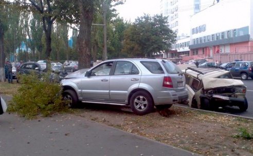 В Гомеле водитель Kia протаранил три припаркованных авто и снес дерево