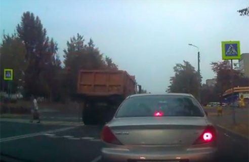 Хотите узнать больше? Самосвал не уступил дорогу пешеходам, которые переходили улицу Быховскую. Запись с видеорегистратора, на которой видно, как легковые автомобили
