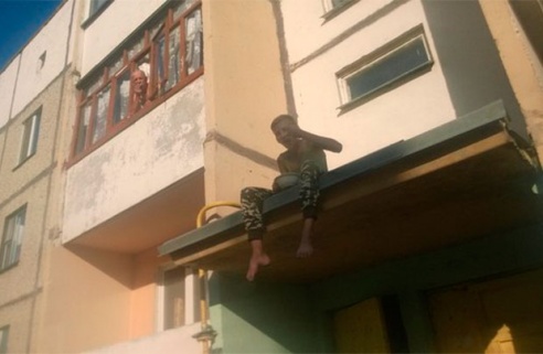 Фотофакт: в Гомеле молодой человек решил перекусить, сидя на козырьке подъезда
