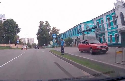 Фотофакт: в Костюковке МАЗ вытолкнул с дороги легковушку