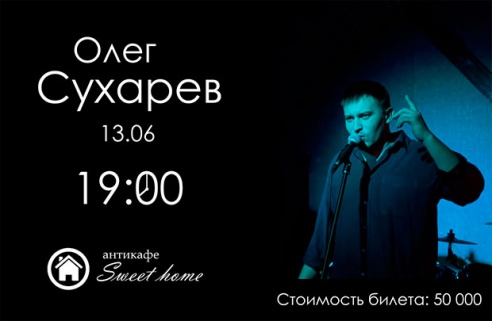 Хотите узнать больше? 13 июня в уютных стенах антикафе «Sweet Home» выступит украинский мызкант, автор песен, лидер группы «Самі Свої», Олег Сухарев. Группа Самі Свої
