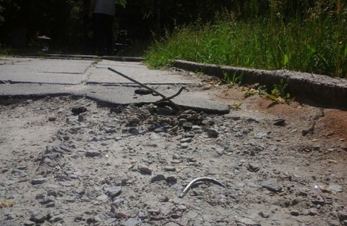 Фотофакт: гомельчанка до крови поранила ногу о торчащий из земли штырь на улице Быховской