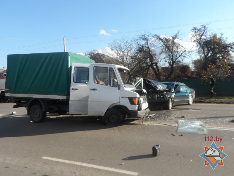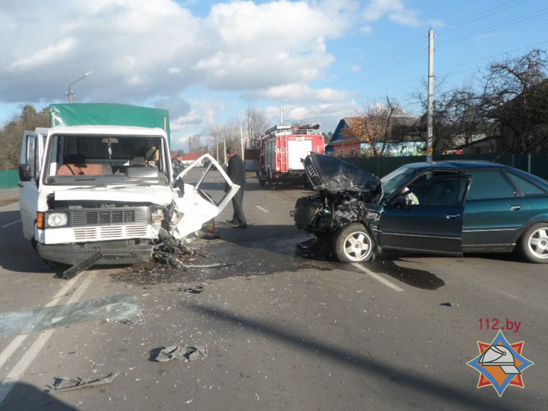 В Хойниках «Мерседес» лоб в лоб столкнулся с «Ауди», четыре человека пострадали (фото)