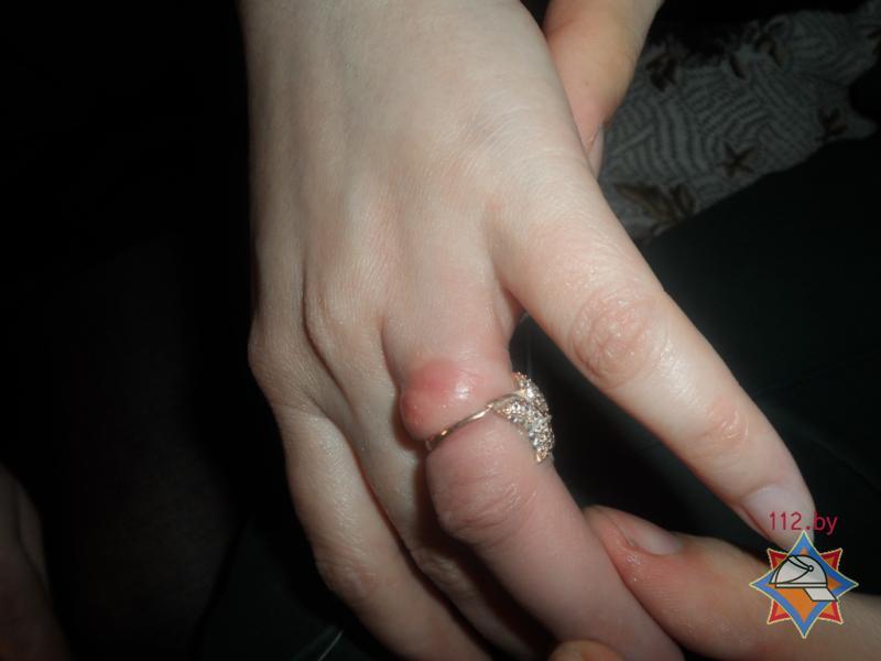 Пережатый кольцом палец сильно распух, и снять с него украшение без специального инструмента не представлялось возможным. Как сообщает Гомельское ОУМЧС, 36-летнюю пострадавшую от «золотого плена» освободили при помощи обычных кусачек.