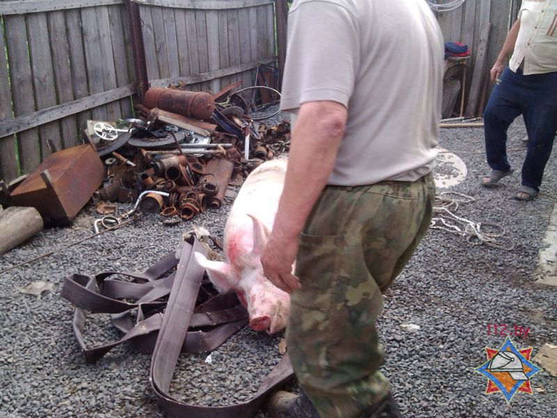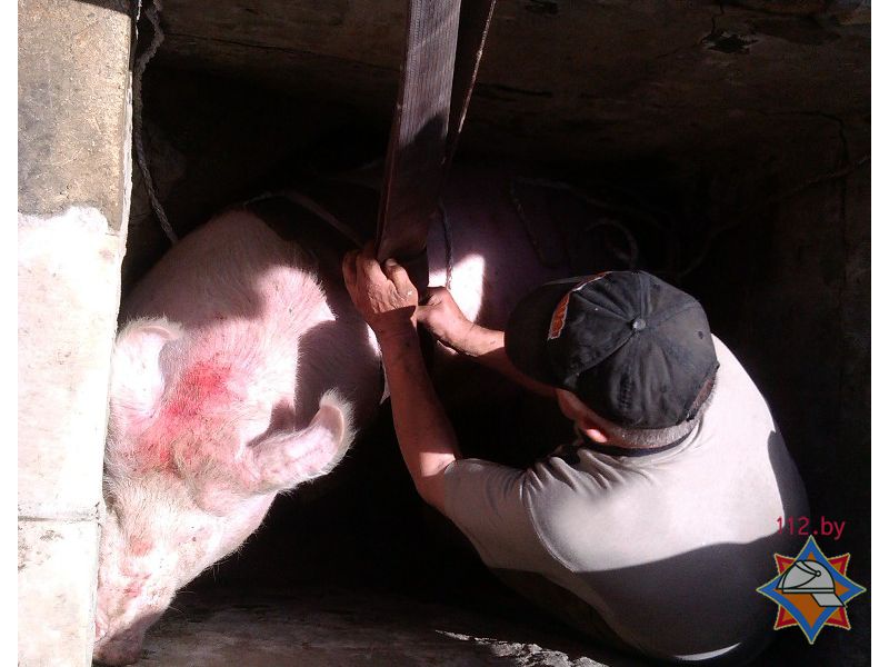Днем 3 июня житель Хойников сообщил в дежурную службу МЧС о том, что его свинья упала в колодец во дворе.