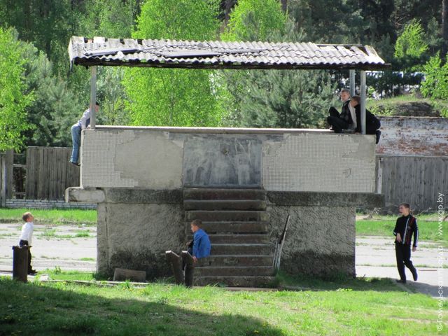 Особую обеспокоенность вызывает состояние школьных территорий и детских площадок возле жилых домов. Так, в Житковичском районе на территории спортивной площадки городской гимназии на момент проверки вблизи спортивных снарядов обнаружены элементы железобетонных изделий, камни, демонтированная конструкция, из земли выступали металлические штыри. На территории СШ № 4 райцентра находилась неиспользуемая трибуна, возведенная здесь еще во время существования войсковой части. Ее высота около 2,5 метра, крыша в ветхом состоянии, перила лестницы не закреплены. Тем не менее на ней постоянно играют дети, лазят по выступам и забираются на стены (на снимке).