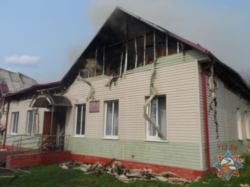 Здание ДОСААФ горело в Хойниках (фото, видео)