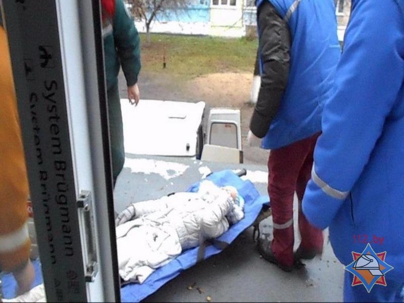 Спасатели спустили пострадавшую на землю и передали бригаде скорой помощи, сообщили в Гомельском ОУМЧС.