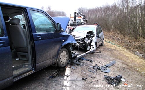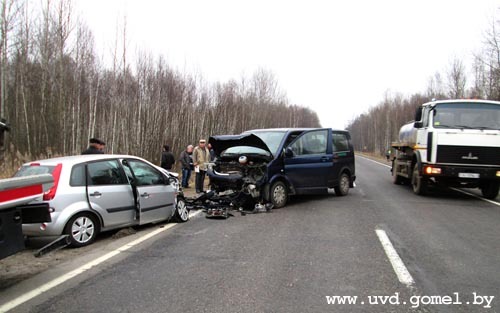 30-летняя гомельчанка на 166 километре дороги не справилась с управлением, выехала на полосу встречного движения и столкнулась с микроавтобусом «Фольксваген Каравелла».