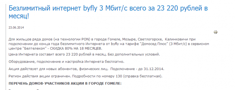 ByFly предлагает в области интернет за 23 220 рублей, другие провайдеры обвиняют его в тактике «выжженной земли»