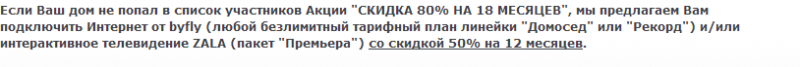 Скандальная акция распространяется только на новых абонентов, которые подключаются по технологии xPON. Для тех, до кого скоростная сеть еще не дотянулась, оператор оставил лазейку в виде скидки в 50% но уже на любой безлимитный тарифный план в том числе и по технологии ADSL.