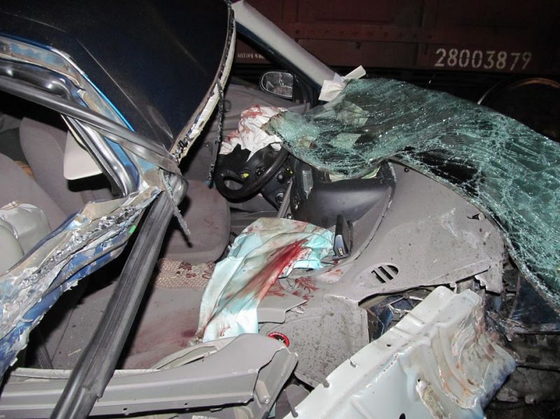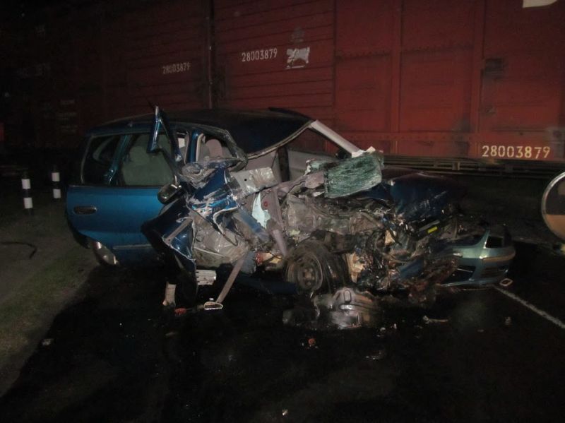 Жуткое ДТП в Калинковичах: поезд подмял под себя «Ниссан», водитель которого проигнорировал знак об остановке перед путями