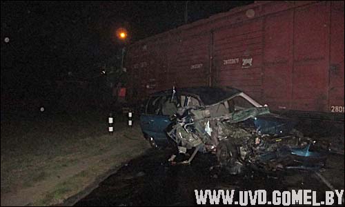 В это время справа налево по ходу движения автомобиля по путям на территорию ОАО «Калинковичихлебопродукт» ехал грузовой поезд. «Ниссан» столкнулся со вторым вагоном с головы маневрового поезда.