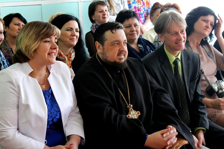 Игумен Авксентий — председатель епархиального отдела религиозного образования и катехизации Туровской епархии осветил кабинет и вручил малышам сладкие подарки. Дети, в свою очередь продемонстрировали творческие таланты.