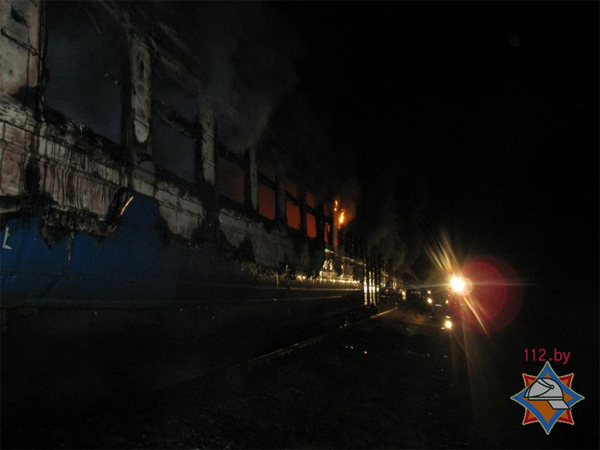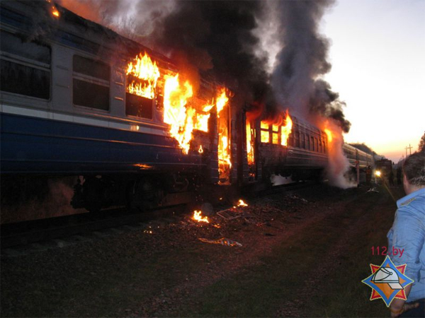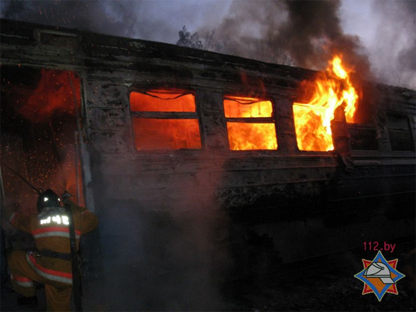 Как сообщил БелаПАН пресс-секретарь Гомельского областного управления МЧС Руслан Габрилев, звонок о пожаре поступил от машиниста поезда примерно в 17.00 26 октября. На место ЧП — перегон Бринево — Старушки — отправились шесть автоцистерн. На месте выяснилось, что огнем полностью охвачен третий вагон и горит обшивка второго.