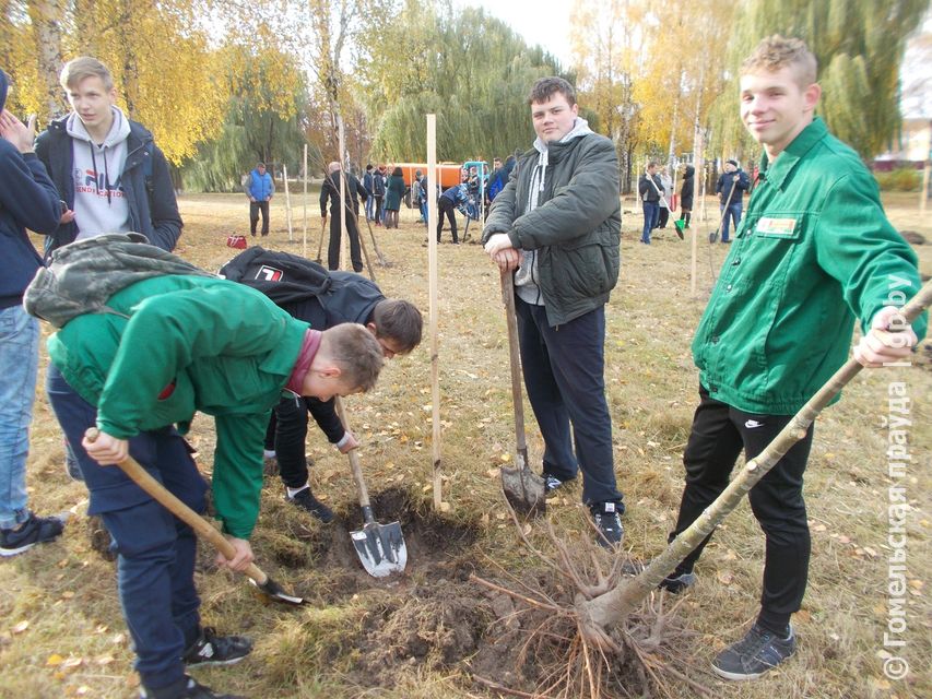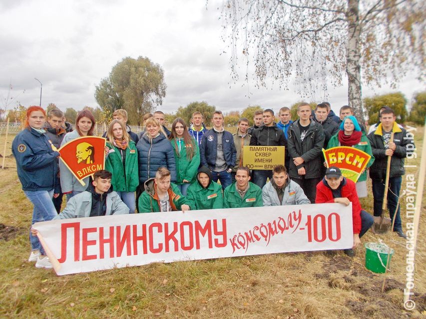 Об этом можно узнать из таблички, установленной недалеко от Полесского аграрного колледжа, на месте, где высажены молодые деревца и кусты. На почти гектарной площади – березы, липы, клёны, калина, всего полторы сотни саженцев. Закладку сквера неслучайно приурочили к юбилейной дате самой массовой молодежной организации времен СССР.