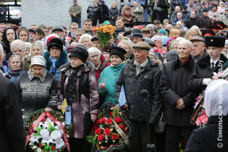 У мемориального комплекса в Озаричах собрались бывшие узники концлагеря, представители районной власти, общественных и молодежных организаций, а также заместитель Чрезвычайного и Полномочного посла Федеративной Республики Германии в Республике Беларусь Аня Лютер, депутат палаты представителей Национального собрания Республики Беларусь Евгений Адаменко, муж дочери маршала Рокоссовского Александр Урбан, руководство и сотрудники управления Следственного комитета РБ по Гомельской области.