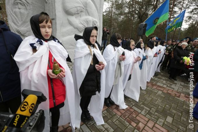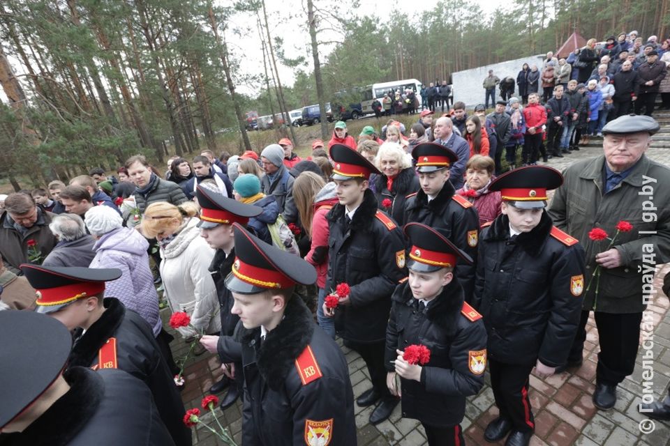 В одном скорбном ряду с бывшими малолетними узниками на митинге-реквиеме стояли юноши и девушки, по возрасту — их внуки и правнуки. Это ученики Озаричской школы, а также кадеты и студенты из Гомеля — участники маршей мира, которые организует и проводит областная организация Белорусского фонда мира.