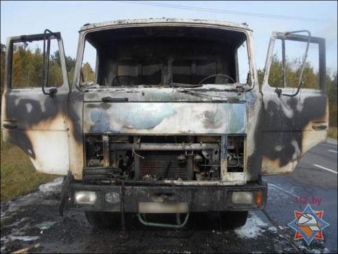 В Калинковичском районе у заправки загорелся самосвал МАЗ