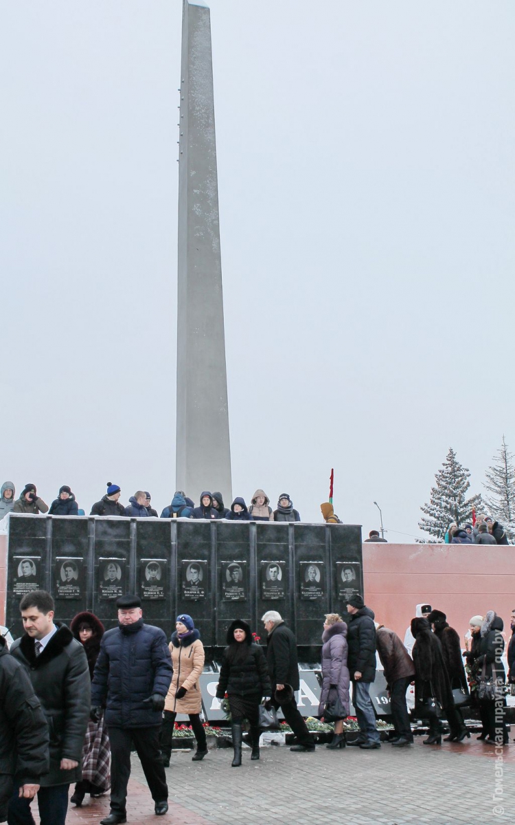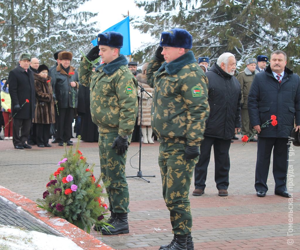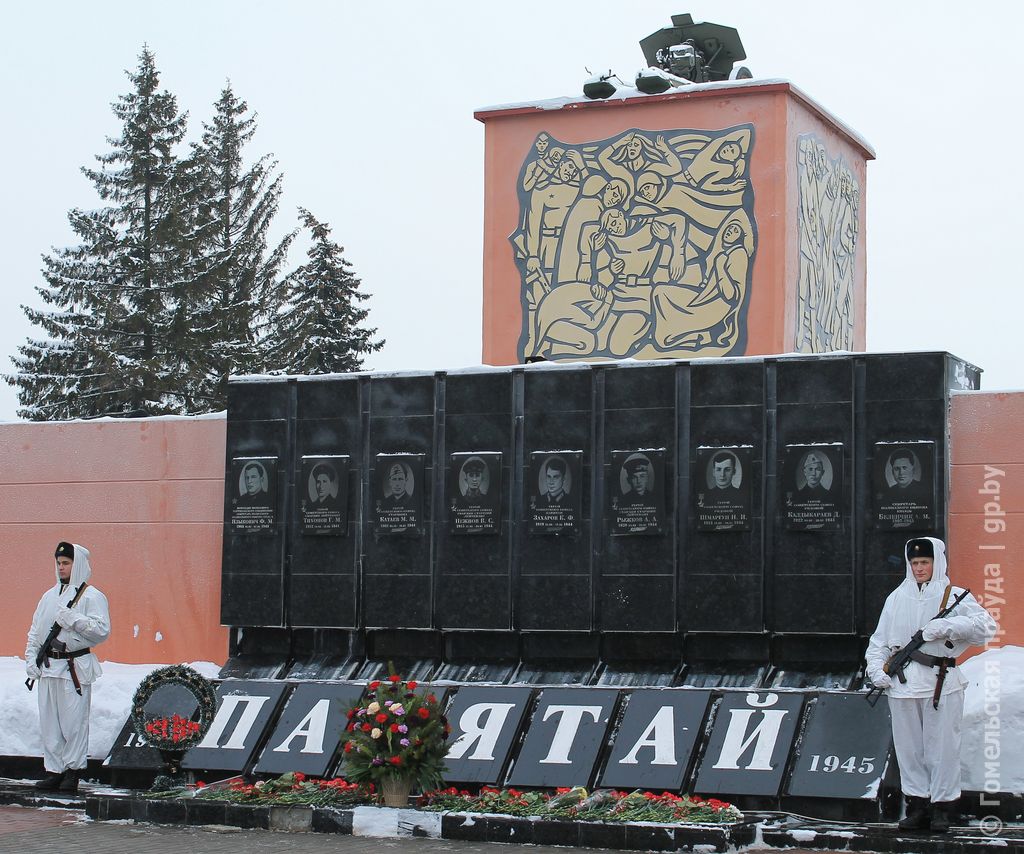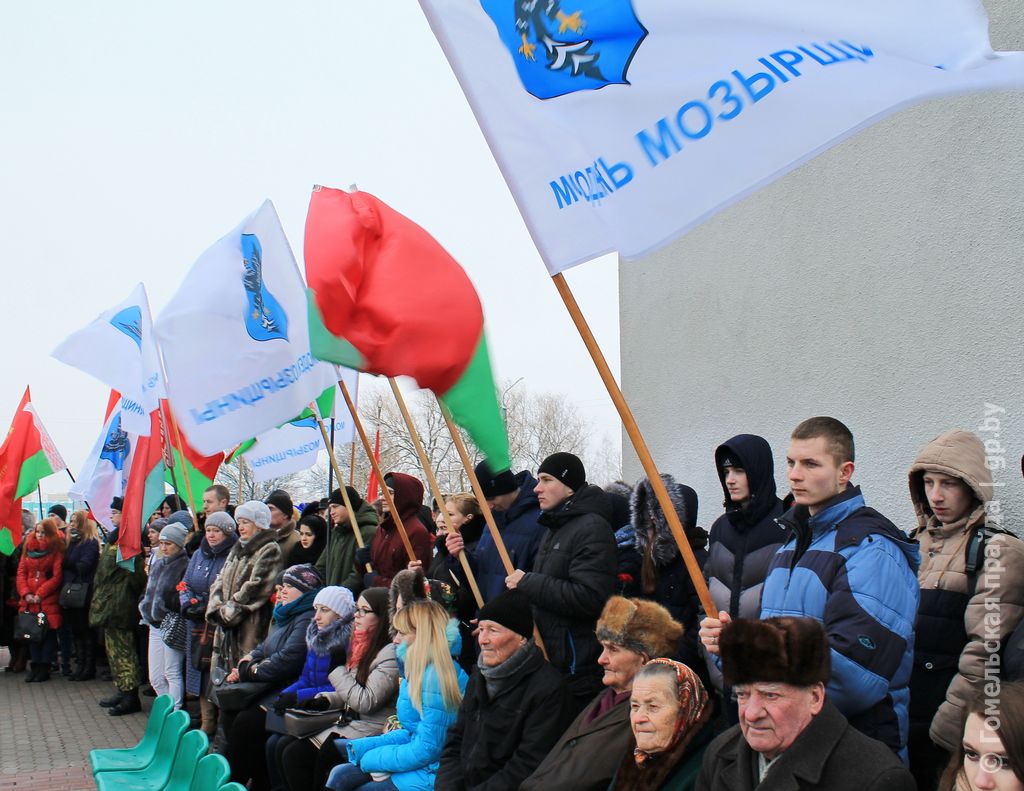 Накануне праздничной даты здесь, по обыкновению, было многолюдно. Даже спустя многие десятилетия современники с благодарностью вспоминает тех, кто принес полесскому краю долгожданный мир, и по традиции в памятный день отдают им дань уважения. На праздничном митинге – немногочисленные оставшиеся в живых ветераны Великой Отечественной, руководители районной власти, депутаты Палаты представителей Национального собрания Беларуси, мозыряне – представители разных поколений. Все они застыли в минуте молчания. Салют из автоматического оружия, как отголосок военных залпов взрывает застывшую тишину. К подножию памятника погибшим легли гирлянды и цветы. 73-й послевоенный созидательный год становится историей.