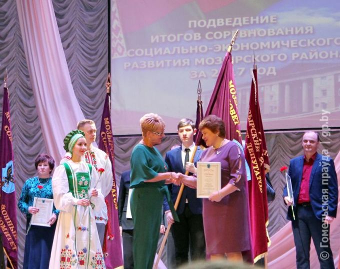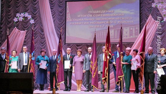 Глава района Елена Павлечко в своем выступлении отметила, что благодаря слаженной работе всех отраслей в 2017 году получен рост все объемных и финансовых показателей в социально-экономическом развитии района. Прежде всего, в этом большая заслуга коллективов ОАО «МНПЗ», «Мозырьсоль», «Беларускабель», Мозырского домостроительного комбината, ЗАО «Партнер и К», предприятий «Западтранснефтепродукт», «Мозырские молочные продукты», совхоза-комбината «Заря», «Козенки-агро», «Слободское имени Ленина», МТК «Полесье» и еще целого ряда. Промышленное производство района на четверть выше, чем в предыдущем году, объем внешней торговли — на 63 %, темп роста производства сельхозпродукции 108,1 %. А животноводческая отрасль района — лидер на Гомельщине и на восьмом месте — в стране. По итогам работы за предыдущий, 2016-й год, семь предприятий Мозырщины занесены на областную Доску почета.