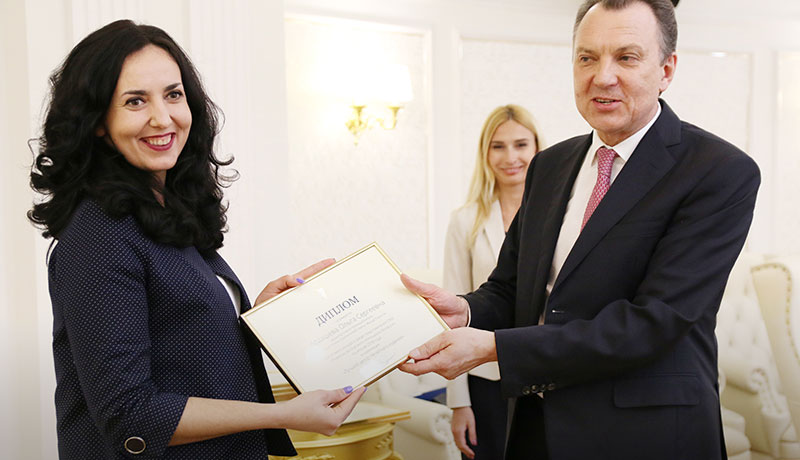 Момент награждения. Диплом вручает председатель Белорусской торгово-промышленная палаты Владимир Улахович