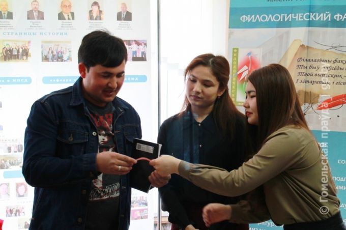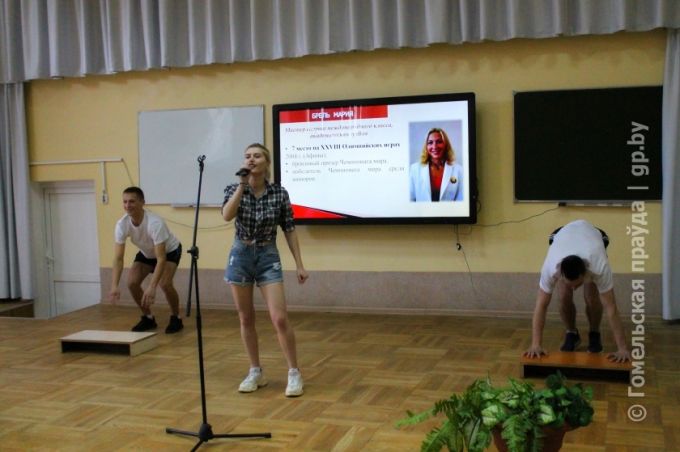 В ходе торжественной части заведующая сектором довузовской подготовки и профориентации Надежда Новик-Щербенко рассказала о правилах регистрации на тестирование и о графике утвержденного ЦТ, затем состоялась презентация пяти факультетов вуза деканами, творческие номера студентов, а завершил торжественную часть декан факультета повышения квалификации и переподготовки кадров, кандидат филологических наук, доцент Павел Кошман. Он рассказал об особенностях и правилах поступления в Мозырский педуниверситет в этом году, о проходных баллах и целевых направлениях.