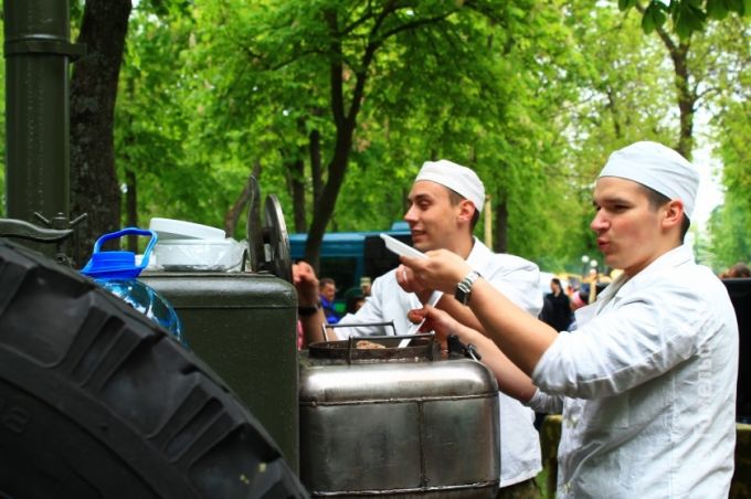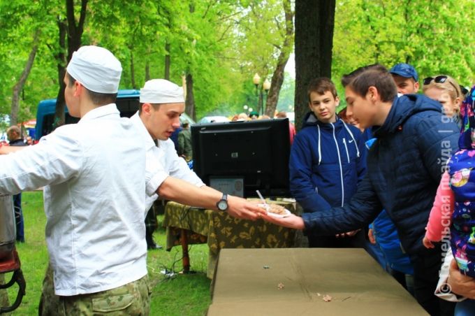 Ну и куда в такой день без солдатской каши? За этим блюдом полевой кухни выстраивались в очередь все желающие.