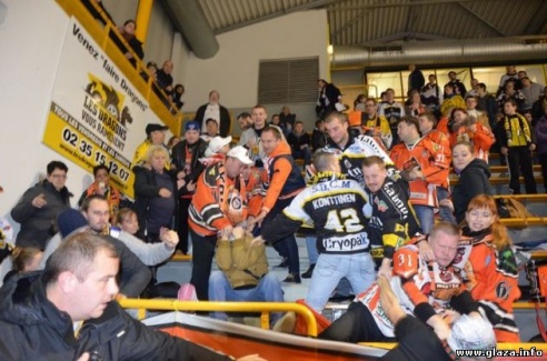 На хоккейном матче во Франции белорусские болельщики подрались с польскими