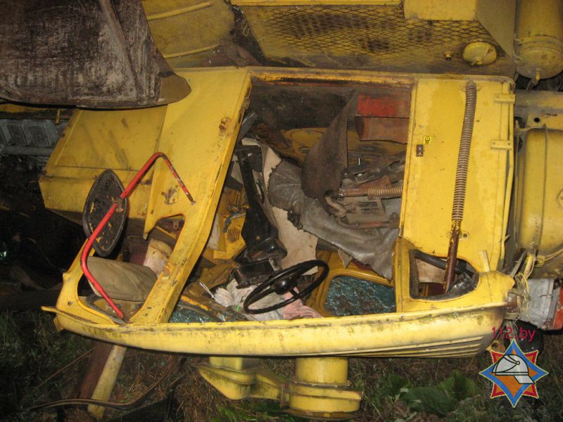 В результате происшествия мужчина оказался заблокирован в салоне трактора. Пострадавшего извлекли силами колхоза и подразделения спасателей, сообщили в Гомельском ОУМЧС.