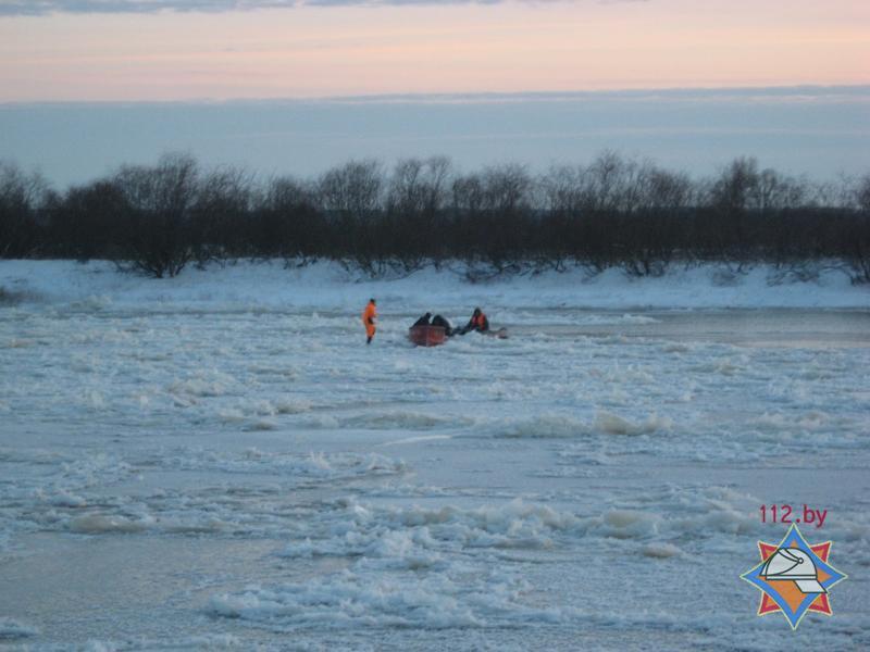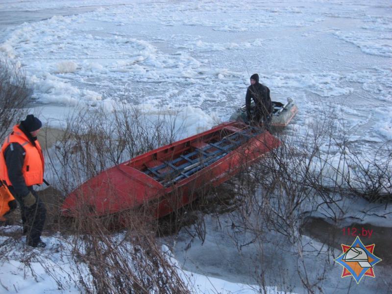 В Петриковском районе спасатели помогли переправиться через Припять рыбакам, у которых заледенела лодка