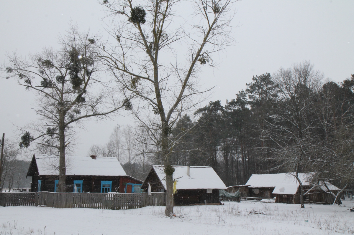 Добраться из Петрикова в Белолесское было непросто, хотя от райцентра до поселка рукой подать — какой-то десяток километров. Но лесная дорога петляла вправо и влево, порой едва угадываясь. Одинокий хутор с заснеженными постройками вынырнул из белого хвойника неожиданно. Казалось, он соединял землю и небо и стоял здесь вечно, являясь частью лесного пейзажа.