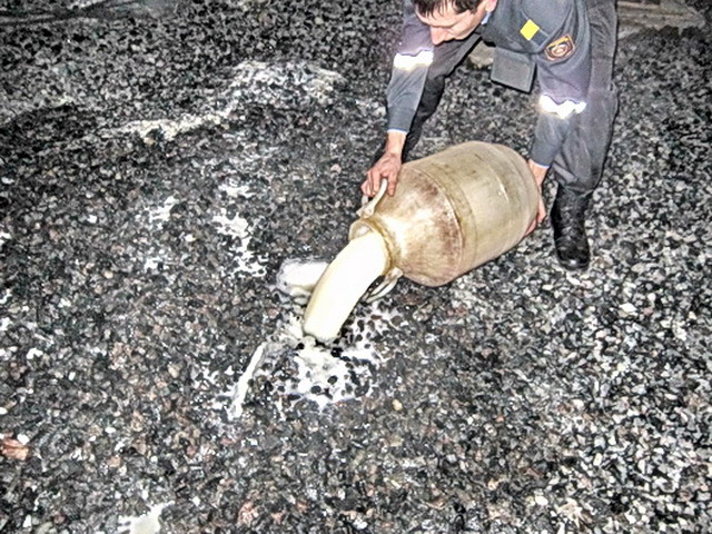 В конце октября житель Житковичского района, чтобы избавиться от бидона самогона, вылил его прямо на пол в РОВД.