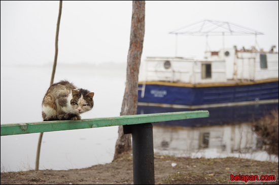 Цэнтр вёскі пакуль сухі, можна прайсці. А па некаторых вуліцах ужо не пройдзеш і ў гумовых рыбацкіх ботах. Людзі плаваюць на чаўнах — у краму, ФАП, адзін да аднаго па справе. Топяцца печкі, іх дым змешваецца з туманам, сцелецца над вадой.