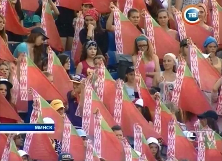 Кстати, около амфитеатра, на сцене которого во время празднования юбилею города выступали многие коллективы, официальный красно-зеленый флаг повесили вверх ногами, что уже давно, пожалуй, никого не удивляет и в очередной раз демонстрирует истинное отношение властей к своему «флагу». Так он на протяжении всех концертов и провисел.