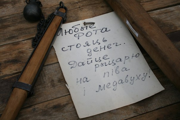 А активисты местного русскоязычного клуба исторической реконструкции «Терра» на своем стенде информировали в написанном «трасянкой» объявлении о том, что фотографирование с их рыцарями платное.