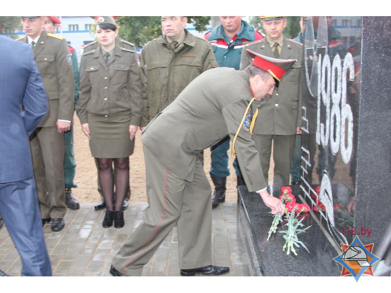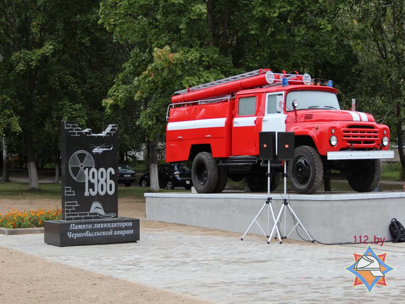 Памятник на улице Молодежной напротив РОЧС установлен в честь тех речичан, которые трудились в зараженных радиацией районах. Рядом с обелиском на постаменте установлена пожарная машина. Такие машины были широко распространены в те времена, сообщают в Гомельском ГОУЧС.