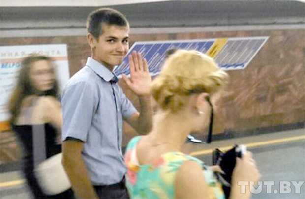 Фото Саши со случайными прохожими, снятое на мобильный, предоставили одноклассники Саши. Таким они его запомнили