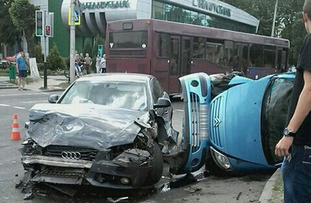 Опять левый поворот: на перекрестке Citroen не пропустил Audi и от удара опрокинулся (фото)