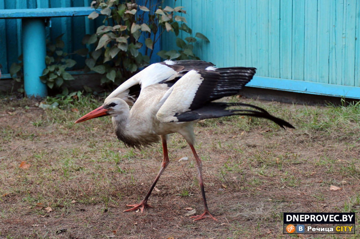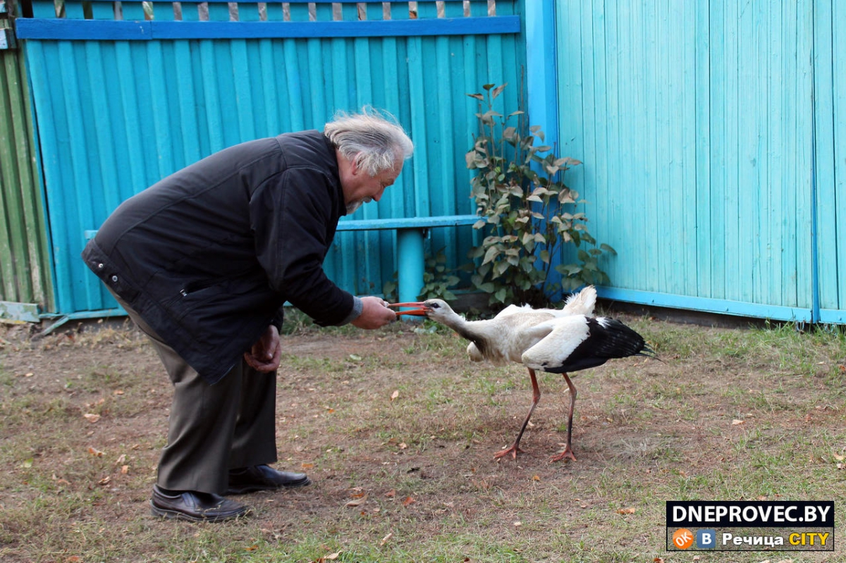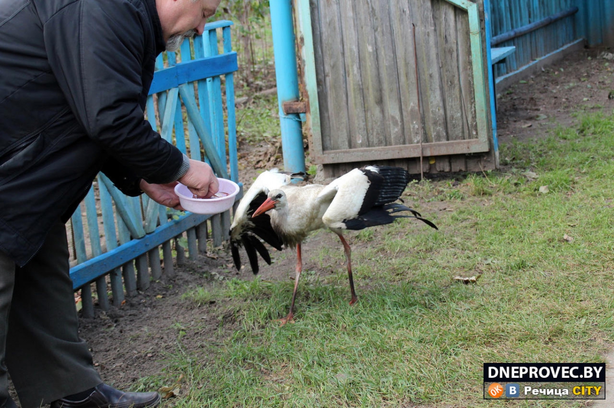 Супруги Завадские из Речицы спасли и выходили аистёнка Бусю, выпавшего из гнезда, и теперь ищут ему постоянный дом