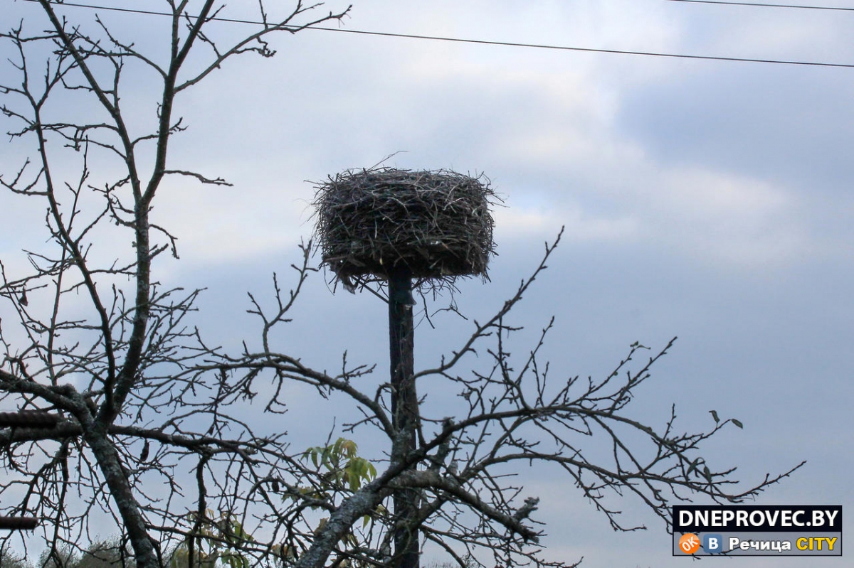 То самое гнездо, откуда аистенок упал. Погожими денечками Буся наводил в нем порядок