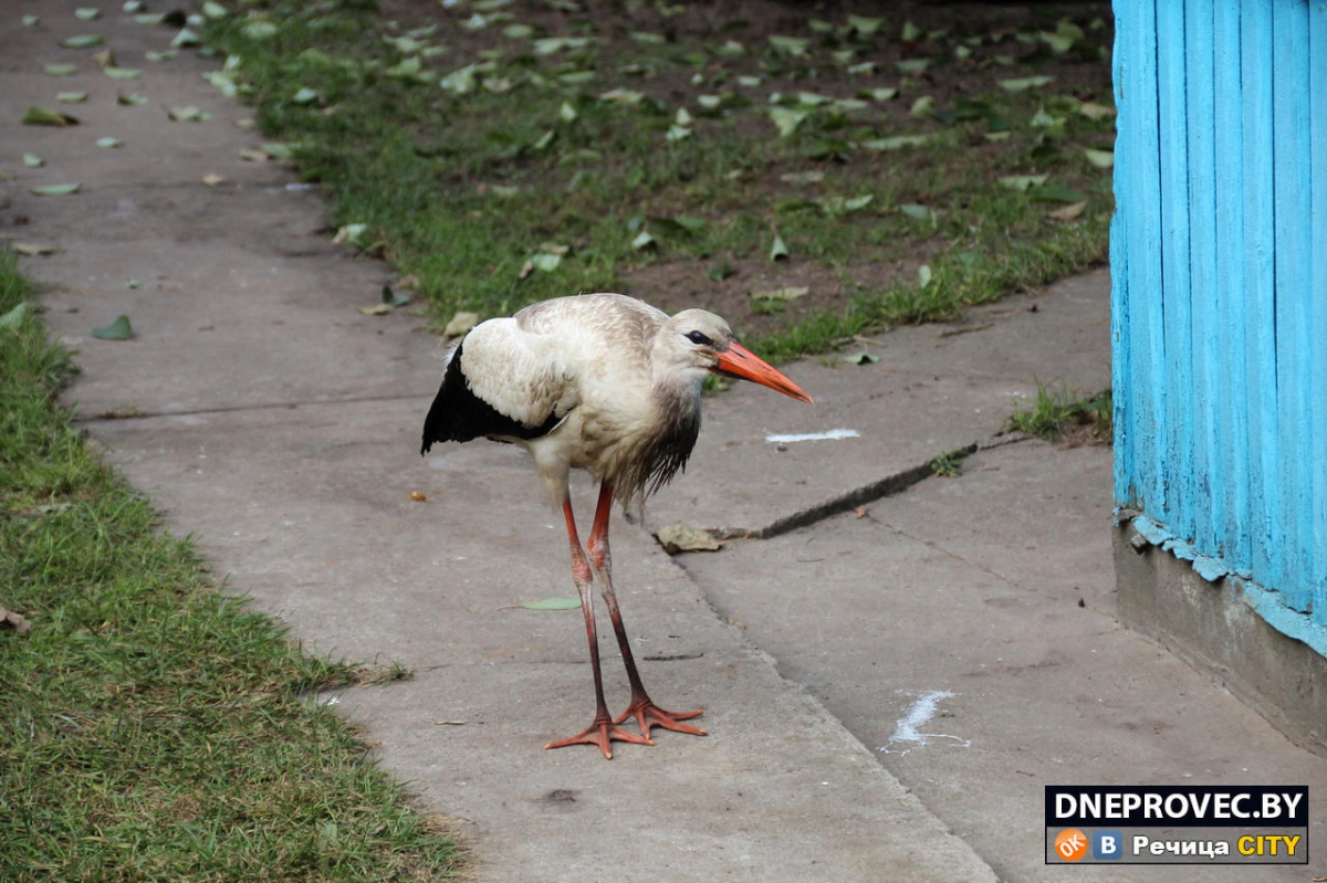 В августе, перед перелетом, Михаил Иванович, приехав на дачу, обнаружил прижавшегося к воротам аистенка, гнездо уже пустовало. Бедолага был тощий, крылья опущены, голова спрятана в перья. Казалось, что жизнь в нем едва теплилась. Видно, не один день он простоял так без еды и питья, дрожа от страха: рядом проносились с шумом машины, проходили люди. Хозяин дачи открыл калитку, позвал аистенка.