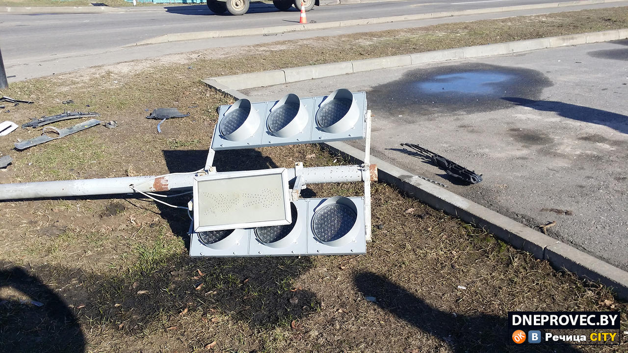 Силы удара оказалось достаточно, чтобы малолитражный хэтчбек снес установленный накануне новый светофорный объект, а минивен развернуло на 90 градусов и протянуло ещё метров тридцать по проезжей части.