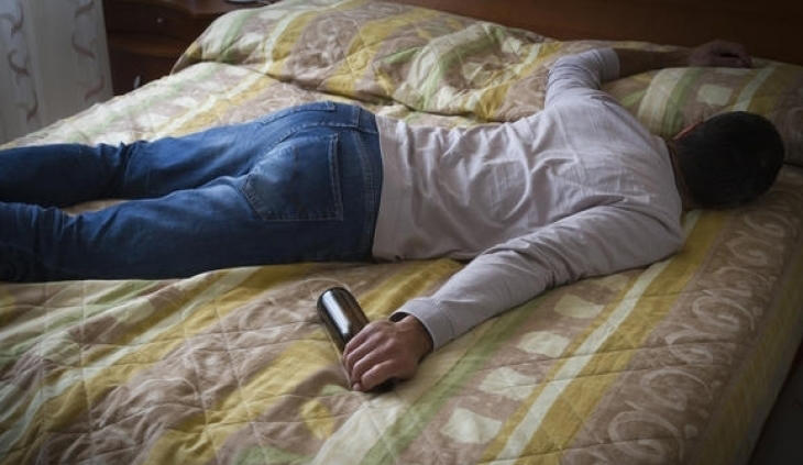 Понятное дело, парень был под градусом. Похулиганив, он забрался в хозяйскую постель для восстановления заметно поубавившихся сил.
