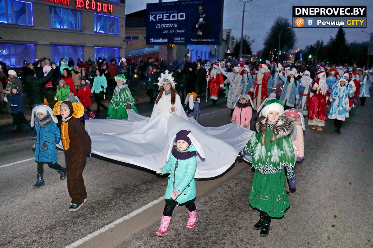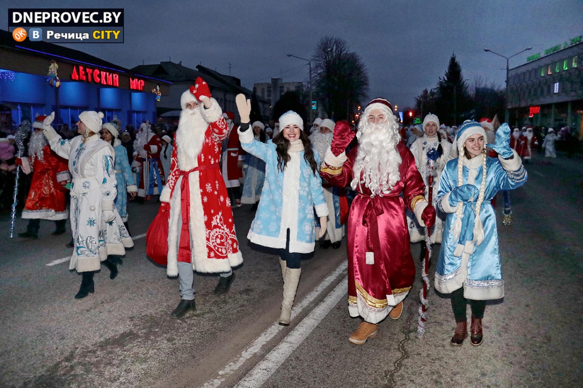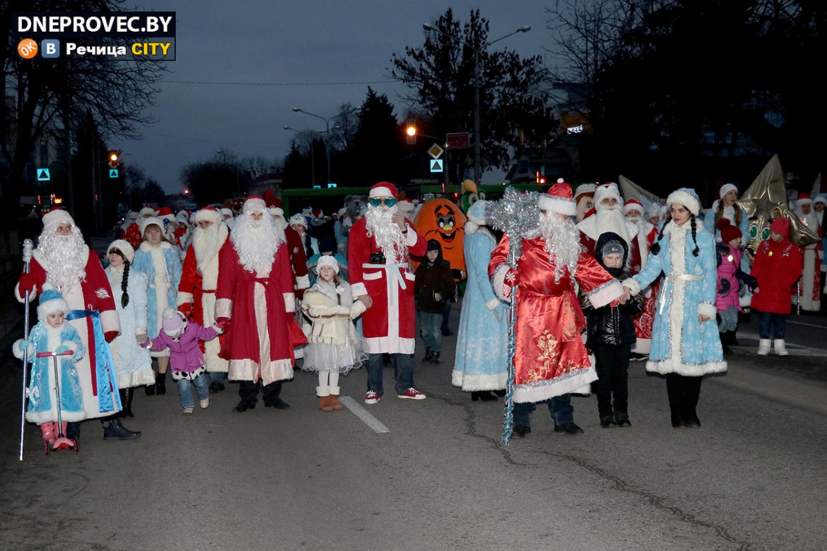 В Речице миновало сценическое кортеж Дедов Морозов и Снегурочек