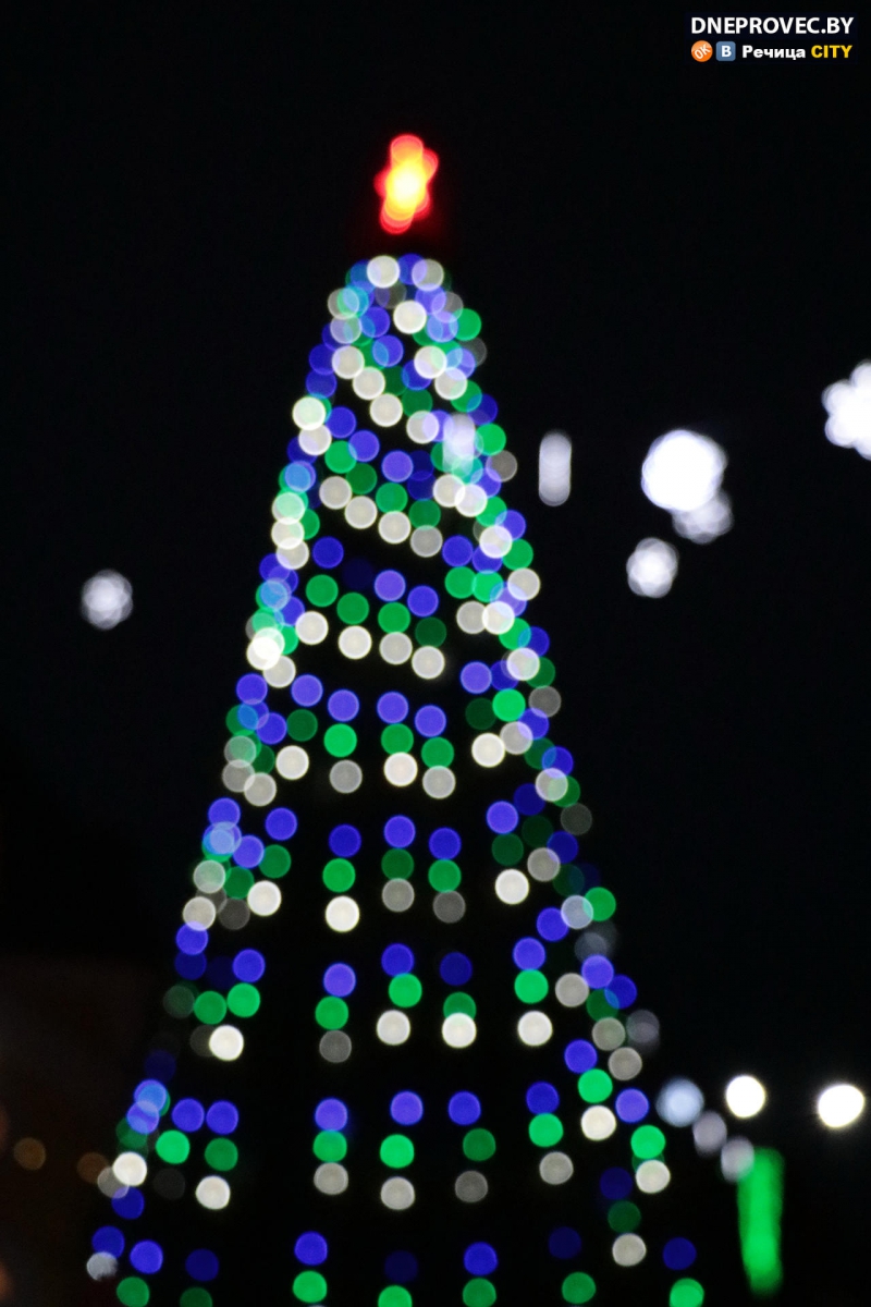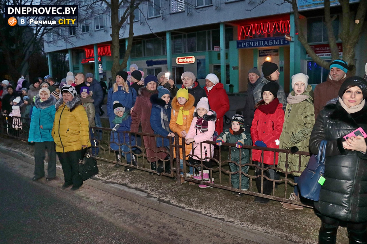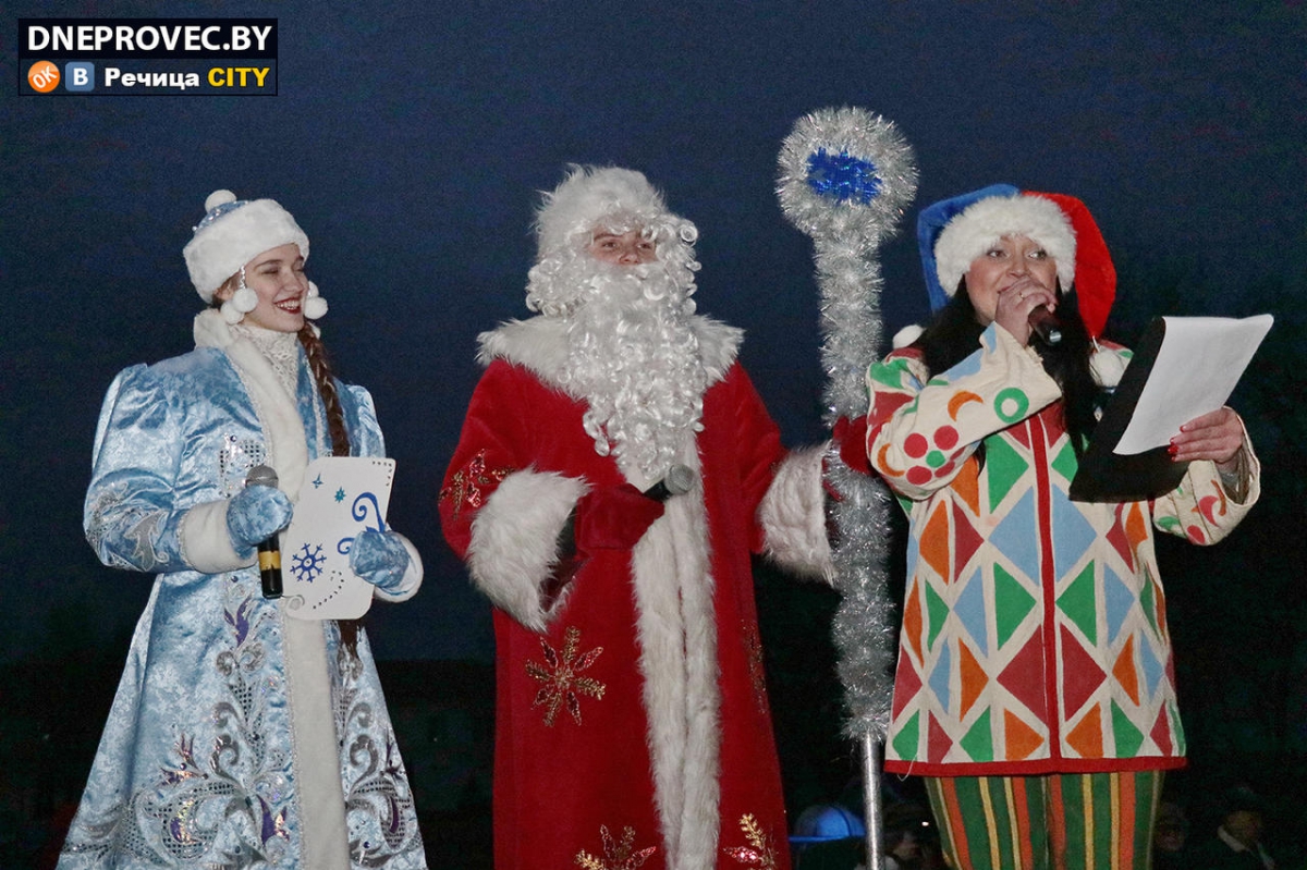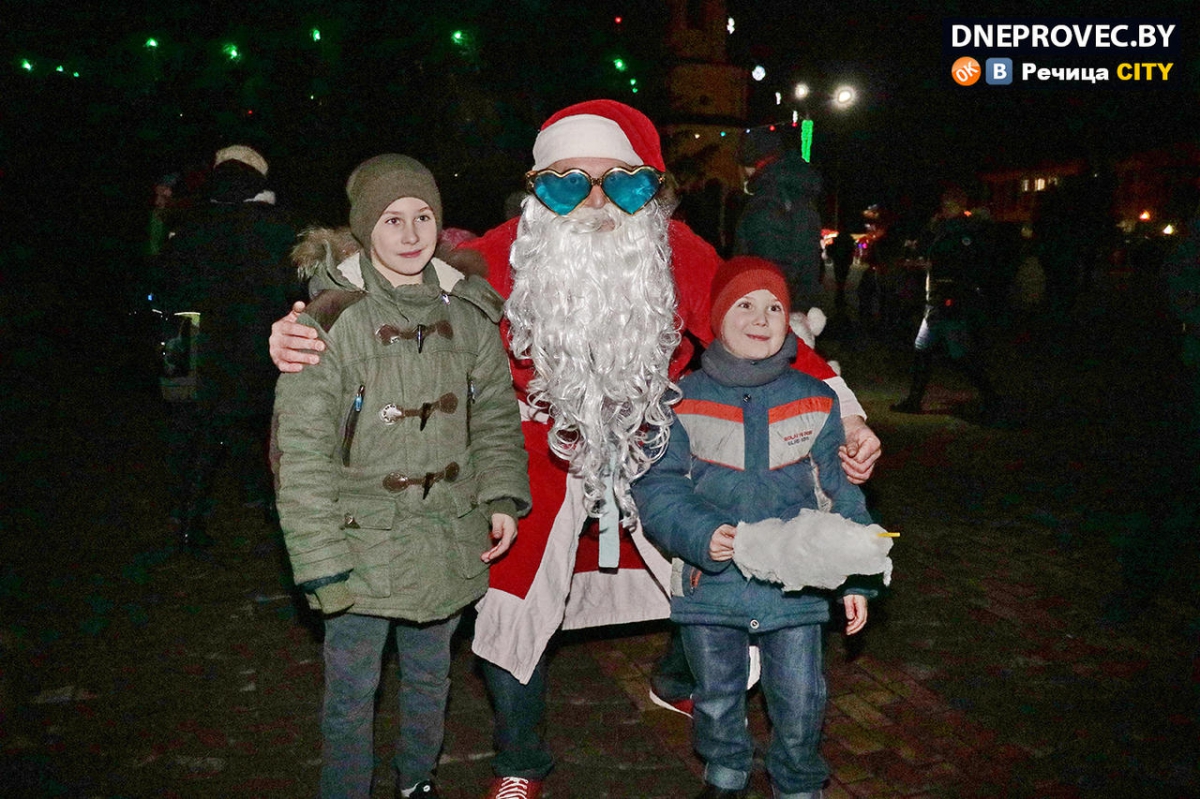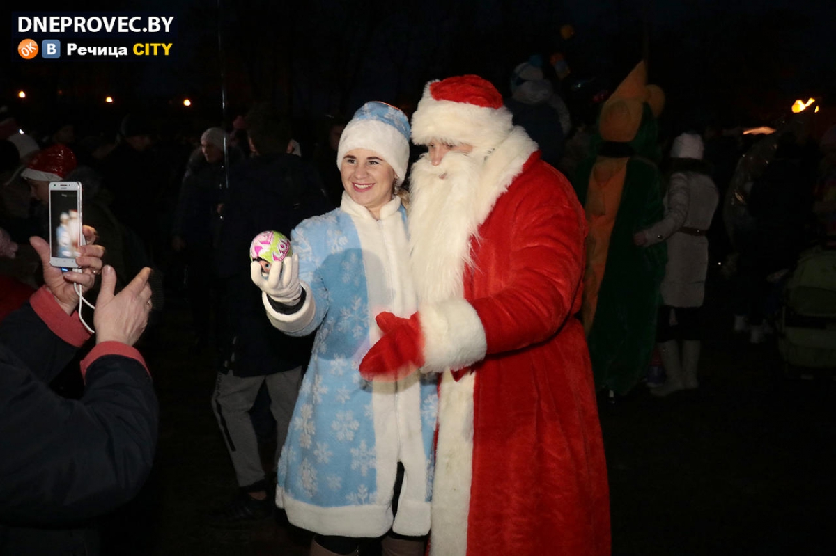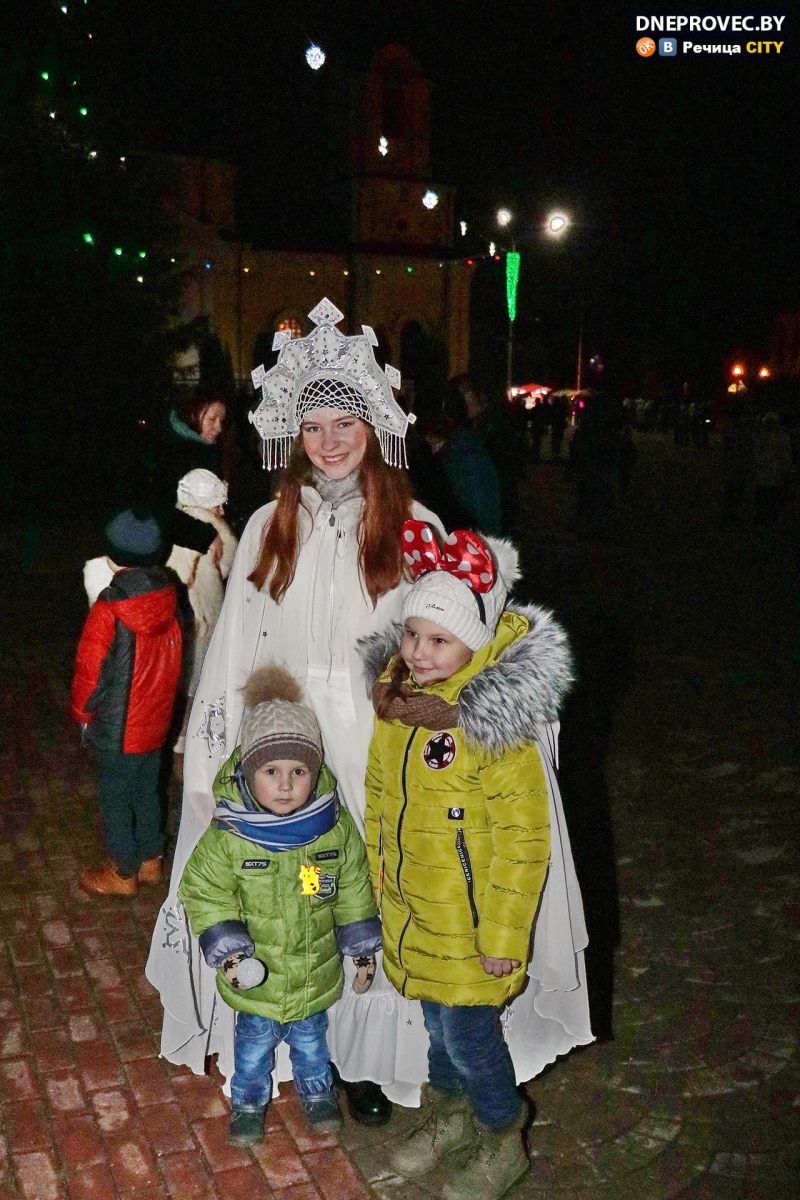 На сцене на Центральной площади те же герои развлекали детвору вместе со своими помощниками. Будет ли снег и придет ли «настоящая» зима — покажет время, но праздники случатся обязательно, в доказательство чему и зажглась в центре Речицы ёлочка-красавица.